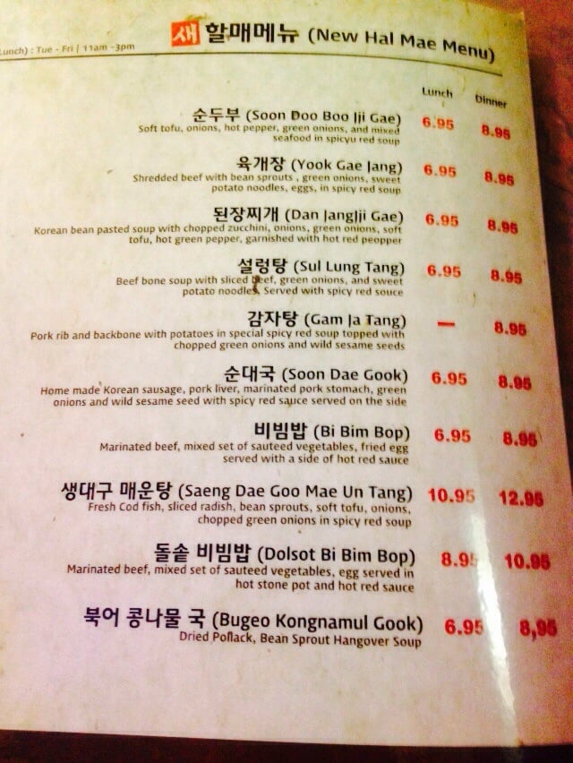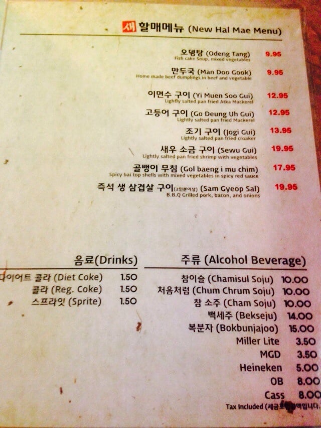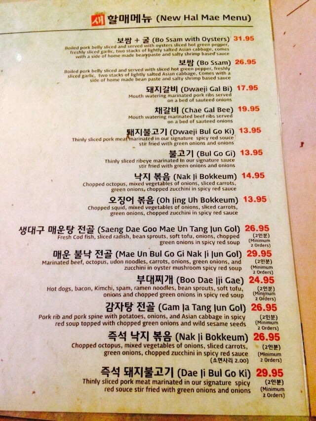 Halmae Bossam Menu
